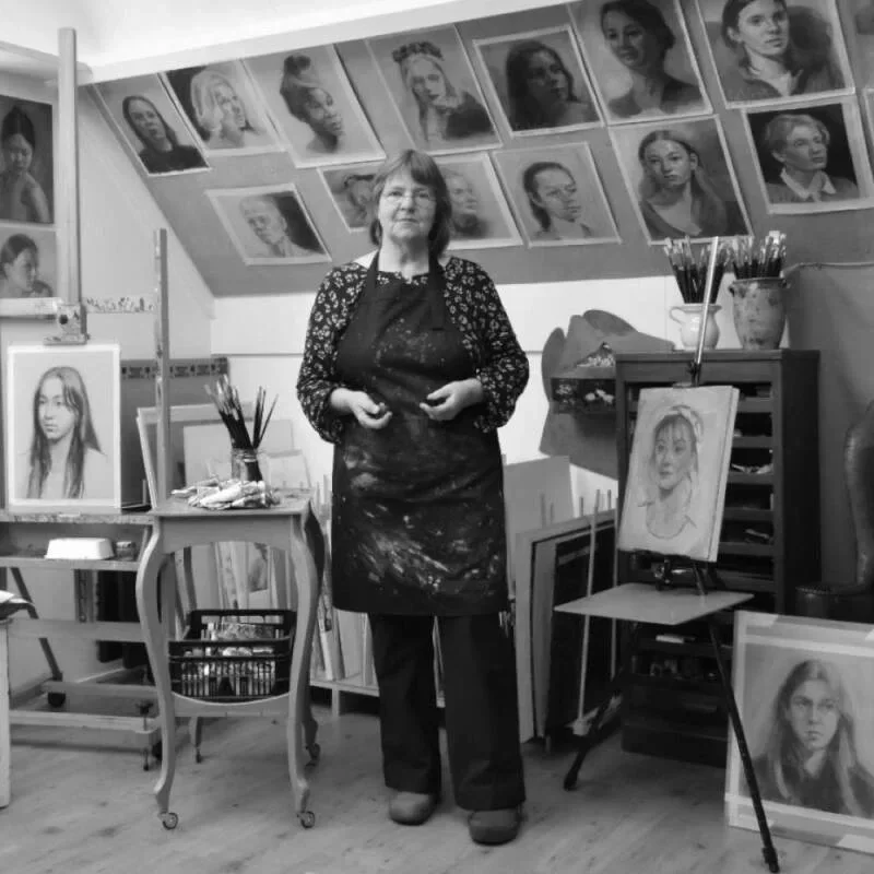 Je kunt kiezen voor een 5-daagse cursus. Aaneengesloten of verspreid met tussenpozen. Centraal staat de klassieke portretmethode. Met die basis kun je thuis aan de slag en eindeloos experimenteren. ‘Vergelijk het met fietsen’ zegt Irene , je moet eerst leren fietsen voordat je handen los kunnen. Zo is het met portretschilderen ook.’